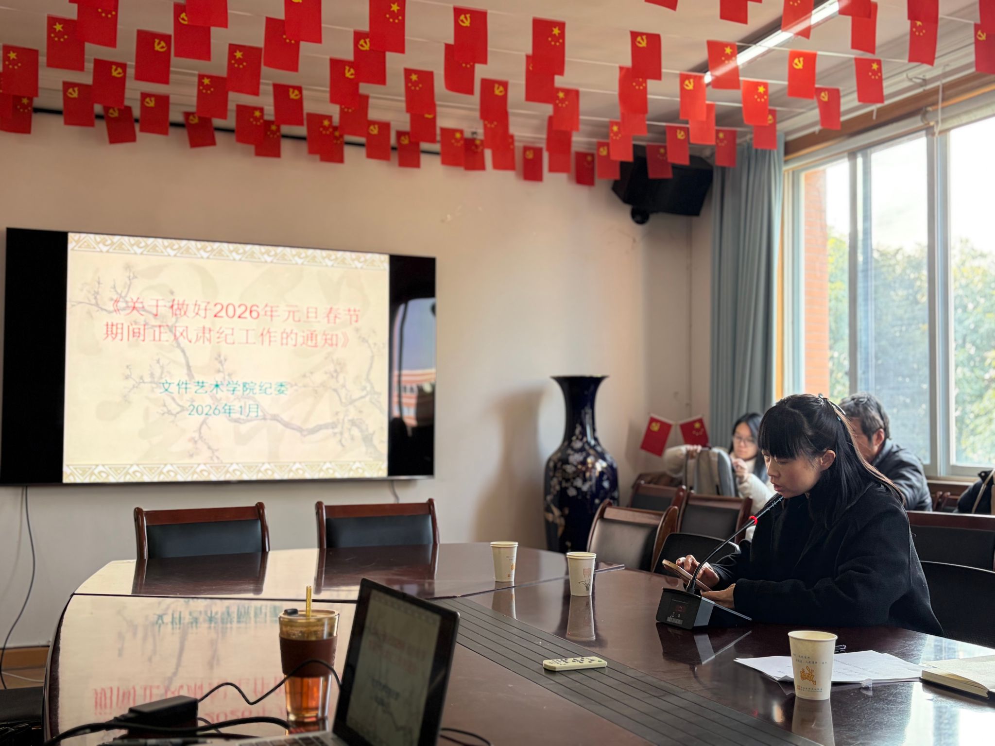为深入贯彻落实全面从严治党要求,筑牢节日期间廉洁防线,学院组织了师德警示教育学习,由伍娟老师带领全体教职工集中学习《关于做好2026年元旦春节期间正风肃纪工作的通知》,强调要严防享乐主义、奢靡之风,切实增强纪律意识和规矩意识。通过学习,进一步引导全院教职工知敬畏、存戒惧、守底线,为营造风清气正的节日氛围和育人环境提供了纪律保障。