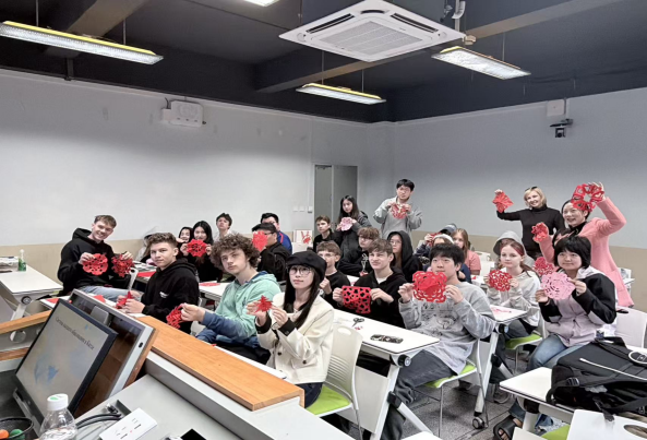 研学过程中,研究生团队立足语言应用与文化传播双重目标,精心打造沉浸式教学场景,创新开设“食堂点餐”实景汉语课堂,通过生活化情景模拟训练,有效提升俄罗斯青少年的汉语实用口语能力与日常沟通水平。同时,团队精心策划中国剪纸等非遗文化体验活动,手把手指导俄方青少年动手创作,让大家在实践中直观感受中华优秀传统文化的深厚底蕴与独特魅力。交流期间,俄方青少年走进我院科普基地与专业实验室实地参观,沉浸式体验校园文化与专业教学氛围,进一步加深对中国教育与文化的认知。