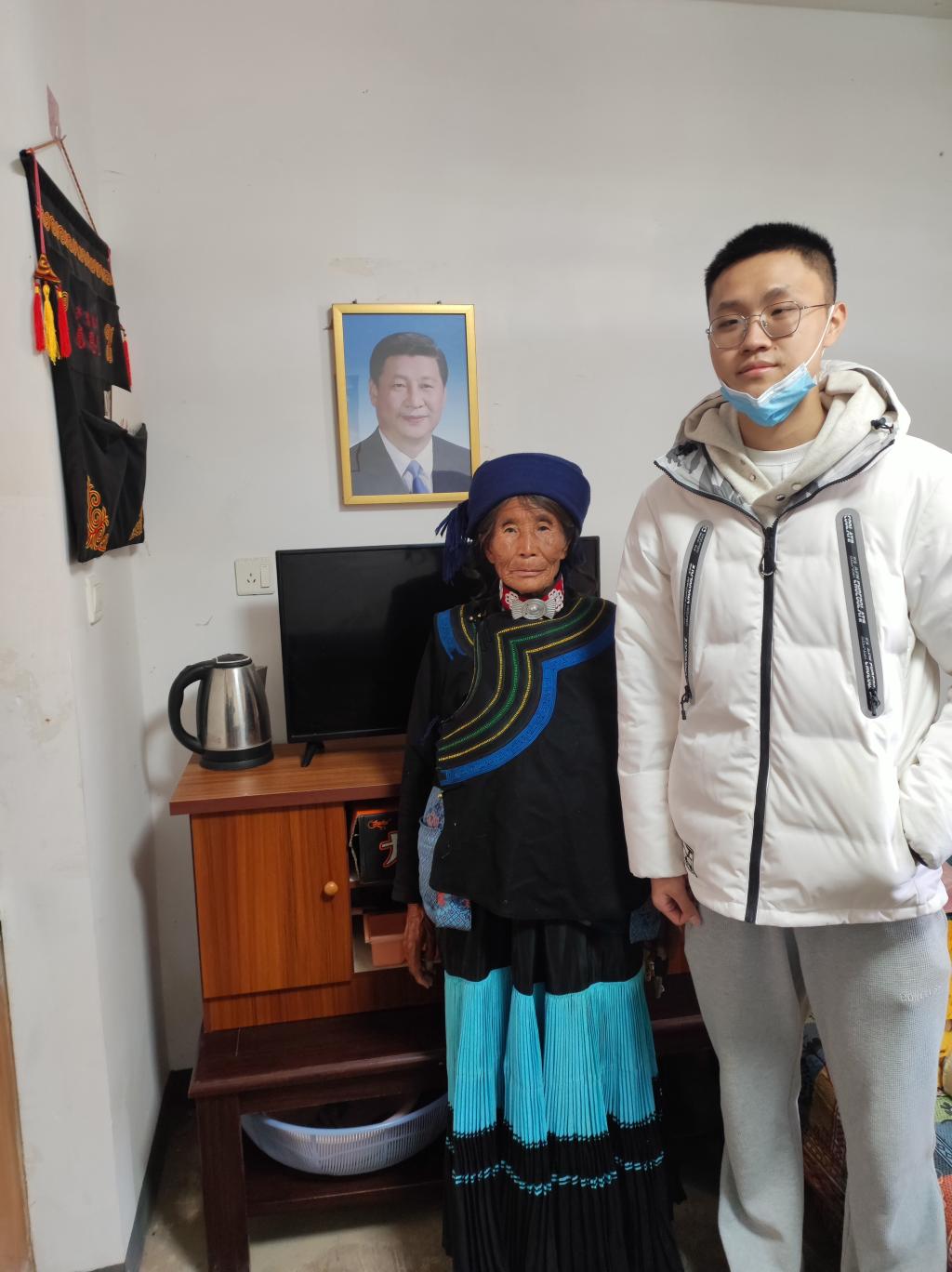 与当地独居老人合影