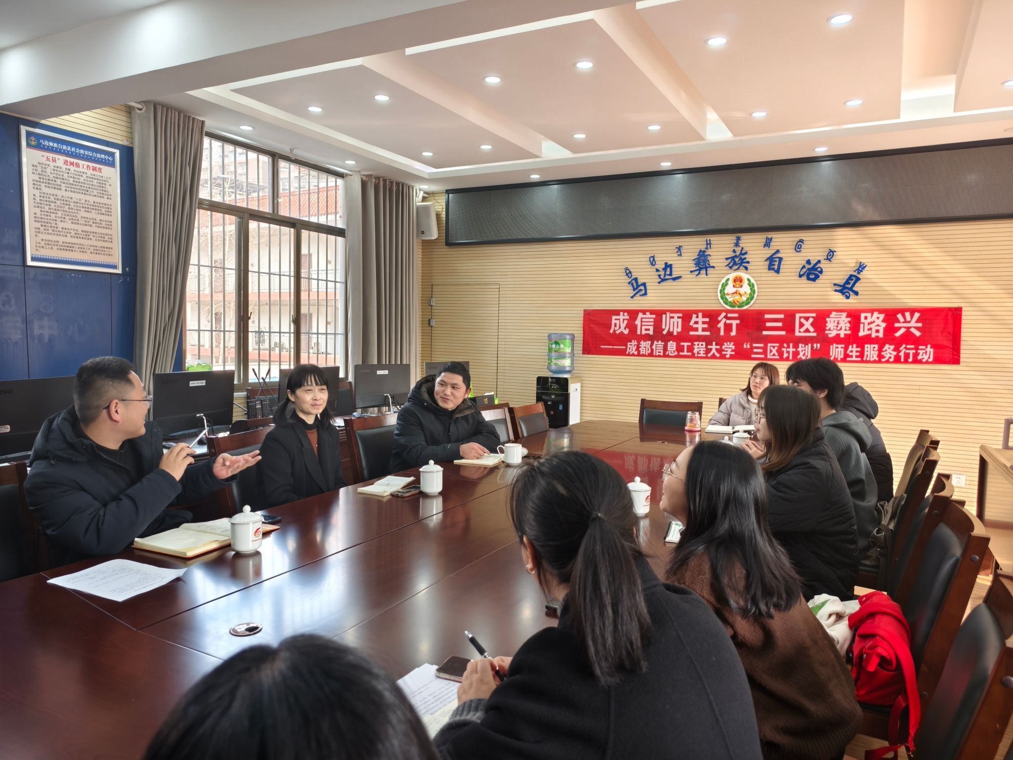 2026年1月16日,受中共四川省委社会工作部委派,成都信息工程大学社会工作系教授、城乡社区治理与社会发展研究所所长、社会工作系教师党支部书记、四川省社会学学会党员伍娟带领社工学生团队,赴马边彝族自治县开展“三区计划”服务,当天,我校社工专业师生团队与马边彝族自治县社会工作部开展了主题座谈会,聚焦服务优化与后续布局展开深入交流。