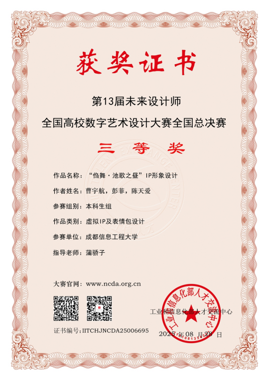 近日,未来设计师·全国高校数字艺术设计大赛(NCDA)全国总决赛结果揭晓,我院学子不负众望,从全国千余所高校的参赛队伍中脱颖而出,共摘得国家级一等奖1项、二等奖2项、三等奖3项,省级一等奖5项,二等奖16项,三等奖14项。作为全国高校数字艺术设计领域的权威赛事,本届赛事吸引了全国1800多所高校参赛(含95%的985大学及众多知名美术学院),另有50个国家和地区的参赛者参与。赛事坚持科艺并重,倡导可持续发展、传承红色文化、助力乡村振兴。我院参赛作品紧扣时代脉搏,将数字技术与艺术创意深度融合。此次佳绩是学院推进“产教融合、科教融汇”的生动实践。学院将持续深化教学改革,为学子搭建优质实践平台,助力他们在数字艺术领域勇攀高峰。